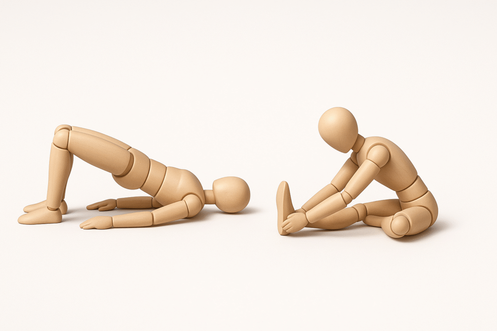 - Hip Bridges – Activates glutes and stabilizes the lower back, preventing injuries.
